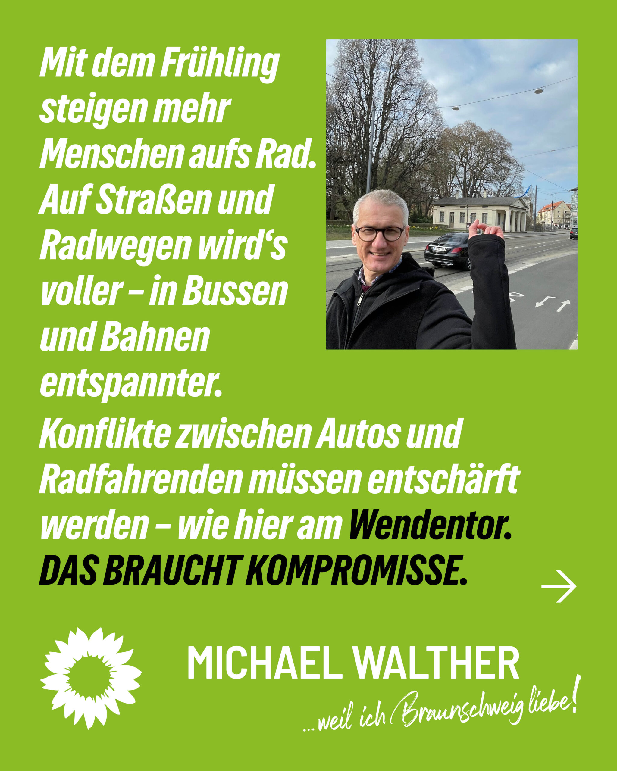 Ich bin 51 Jahre alt und Grüner Oberbürgermeisterkandidat für Braunschweig. Im Herzen Braunschweigs geboren bin ich in verschiedenen Stadtteilen aufgewachsen, im Westlichen Ringgebiet, in der Weststadt und in Veltenhof. Ich kenne die Menschen, Stadtteile und Entwicklungen unserer Stadt. Vielleicht sind wir uns bereits begegnet, in der Beteiligung zu „Denk Deine Stadt“ oder dem Stadtbahnausbau. Denn ich habe bereits in Führungspositionen in der Braunschweiger Stadtverwaltung gearbeitet. Ich möchte Braunschweig weiter gestalten. Dafür trete ich an!